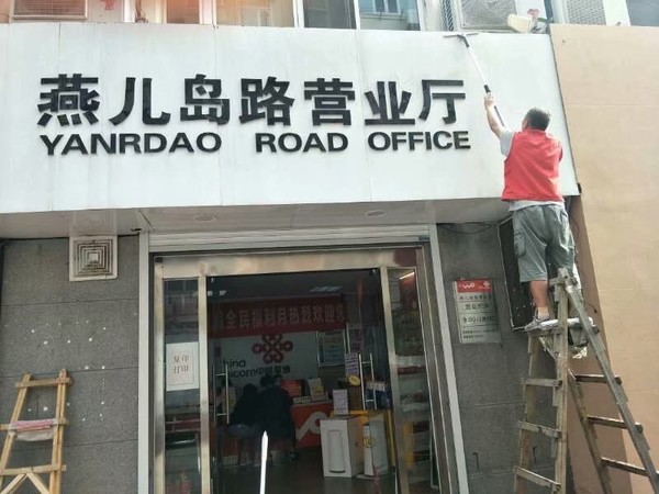 青島萬家潔保潔公司專業(yè)清潔門頭牌匾,針對(duì)如玻璃材質(zhì)、金屬材質(zhì)、pvc材質(zhì),鋁塑板等及各種污漬如:鐵銹、水漬等都有專業(yè)的工具及除漬劑進(jìn)行專業(yè)的清潔。